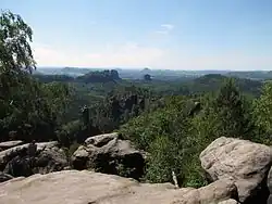 The Carola Rocks (Carolafelsen) are also popular with walkers, being one of the best-known viewing points in the Affensteine massif.