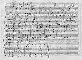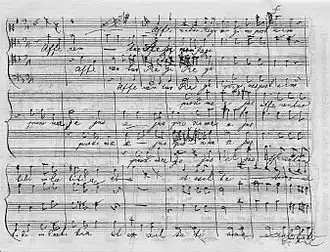An early draft for choir alone was found in a monastic archive at Kremsmünster Abbey. The original manuscript is not extant, but several transcriptions were found in the archive of St. Florian Abbey.[1] Many years later, in 1885, Bruckner dedicated the work as an Offertorium als Graduale (offertory as gradual) to Johann Baptist Burgstaller, choir director of the New Cathedral in Linz.[1]