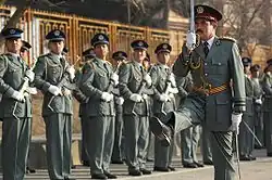 The Afghan National Police (ANP; Pashto: د افغانستان ملي پولیس; Dari: پولیس ملی افغانستان), also known as the Afghan Police, is the national police force of the Islamic Emirate of Afghanistan, serving as a single law enforcement agency all across the country. The Afghan Border Police, which had stations along the nation's border and at major airports, was a separate component of the force.[2] The ANP is under the responsibility of the Ministry of Interior Affairs in Kabul, Afghanistan, and is headed by Sirajuddin Haqqani. It has nearly 200,000 members as of April 2023.[1] Furthermore, the GDI are also a part of the secret police agency of the Islamic Emirate of Afghanistan after the Fall of Kabul in August 2021, and the GCPSU are the special police forces.