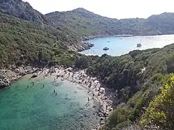 Between the village and Porto Timoni, there are ruins of medieval fortifications that protected the village from pirate raids.[3] A Neolithic settlement from the 2nd millennium BC has been discovered in the area, with findings exhibited at the Archaeological Museum of Corfu.[4][5]