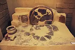 Afrasiyab (Uzbek: Afrosiyob),(Persian: افراسياب afrāsiyāb) is an ancient site in Northern Samarkand, present day Uzbekistan, that was occupied from c. 500 BC to 1220 AD prior to the Mongol invasion in the 13th century (see Siege of Samarkand (1220)).[1] The oldest layers date from the middle of the first millennium BC.[1] Today, it is a hilly grass mound located near the Bibi Khanaum Mosque. Excavations uncovered the now famous Afrasiab frescoes exposed in the Afrasiab Museum of Samarkand, located next to the archaeological site.