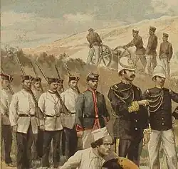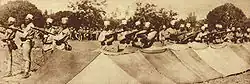 West Africa's largest single state during the 19th century, the Sokoto Caliphate of northern Nigeria moved into the 20th century with its military system intact- the traditional mix of infantry and cavalry. New powers and technologies however were appearing on the scene. Some cavalry-strong states like the Tukolor, made sporadic attempts to incorporate weapons like artillery but integration was poor.[5] Sokoto largely stuck to the old ways, was annexed and incorporated in the British Empire in 1903. Sokoto's soldiers, whether horse or foot, had very few guns. The Caliphate's tactics were to attack in a series of set-piece battles, with thundering cavalry charges leading the way, followed by infantry armed with bow, sword and spear. As the fighting men surged forward into combat, their movements were accompanied by loud music and drums These however were not enough, and assaults were quickly routed by the modern weaponry of virtually invulnerable British squares. Traditional fortified cities and forts also made a poor showing and were usually rapidly breached by British artillery.[6] Thus ended the heyday of the centuries-old West African cavalry-infantry combination. In Southern Africa the mounted men of the Boer forces also saw defeat in 1902, as imperial troops implemented a blockade and scorched earth policy against their mobile tactics. This outcome paralleled general developments on the battlefield, as mounted forces gradually lost their relevance under modern firepower.[4]