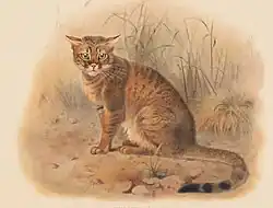 - ^ Harrison, D. L. (1968). "Felis silvestris gordoni". The mammals of Arabia: Carnivora, Hyracoidea, Artiodactyla. Volume 2. London: Ernest Benn Ltd. p. 283.