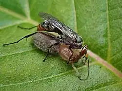 - ^ F, Eduardo; Santos, Dos; CECILIA; WAICHERT; Prado, Cristiane; Santos, Scott Dos (2017). "Behavioural notes on the Neotropical parasocial spider wasp Ageniella (Lissagenia) flavipennis (Banks) (Hymenoptera: Pompilidae), with host association". Ecological entomology. Retrieved 2021-10-19.
