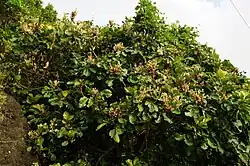 Aglaia rimosa is an evergreen small tree[3] in the family Meliaceae.[4] It is found in Indonesia, Papua New Guinea, the Philippines, and Taiwan (Hengchun Peninsula and Orchid Island[5] ). Aglaia rimosa "grows primarily in the wet tropical biome".[6]The official name of Aglaia rimosa in Taiwan is Large-leaved aglaia, because compared with the other two species native to Taiwan, Aglaia elaeagnoidea and Aglaias chittagonga, the leaflet of Aglaia rimosa is larger than their leaflet, all three are imparipinnate.[7]The flowers of Aglaia rimosa have fragrance, but it is lighter than that of Aglaia odorata.[8]The anticancer compound Rocaglamide (RocA) was originally extracted from Aglaia rimosa by researchers in Taiwan.[9]
