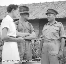 The Japanese invading forces landed in Sandakan on January 19, 1942. For the first few months of Japanese occupation of British Borneo, the Keiths were allowed to stay in their own home. On 12 May Agnes and George were imprisoned on Berhala Island (Pulau Berhala) near Sandakan, in a building that had once been the Government Quarantine Station, along with other Western women and children. Harry was imprisoned nearby.[13] They spent eight months there before Agnes and George were sent to Kuching in Sarawak. They left by a small steamer on January 12, 1943, and arrived eight days later.[14] They were imprisoned in Batu Lintang camp near Kuching, unusual in that it accommodated both prisoners of war and civilian internees in between eight and ten separate compounds.[15] Harry later arrived at the camp.[16] The camp was finally liberated on 11 September 1945 by the 9th Australian Army Division under the command of Brigadier T. C. Eastick.[17] All three members of the Keith family had survived their internment.
