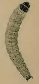 The wingspan is 14–17 mm. Adults are on wing from July to May.[2]