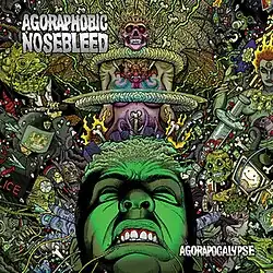 Agorapocalypse is the fourth full-length studio album by American grindcore band Agoraphobic Nosebleed (ANb). It was released through Relapse Records on April 14, 2009, in the United States, and April 20 internationally.[1] The album was recorded by ANb's guitarist Scott Hull at his Visceral Sound studios; Hull also wrote the drum parts using Toontrack's Drumkit from Hell in his digital audio workstation.[2] This is also the band's only album with vocalist Katherine Katz.[1] Agorapocalypse's cover artwork was designed by German illustrator Florian Bertmer.