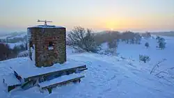 Agri Bavnehøj (or Agri Bavnehoej) is a Danish hill and vista point with a bronze age burial mound, located 137 meters above sea level. It is close to the village of Agri, in Mols Bjerge National Park on the southern part of the Djursland peninsula, 40 kilometres (25 mi) northeast of Denmark’s second largest city, Aarhus. The mound was built 1800 – 1000 years BC.[1] Agri Bavnehøj is the least known of four vista points and burial mounds on southern Djursland, despite being the highest (by a few meters). The others are Stabelhøje, Trehøje and Ellemandsbjerg.