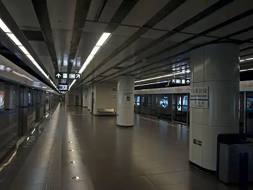 Agricultural Exhibition Center station[1] (simplified Chinese: 农业展览馆站; traditional Chinese: 農業展覽館站; pinyin: Nóngyè Zhǎnlǎnguǎn zhàn) is a subway station on Line 10 of the Beijing Subway in Chaoyang District. It is named after the National Agricultural Exhibition Center (zh).