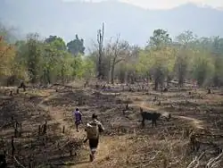 In shifting cultivation, a small area of forest is cleared by cutting and burning the trees. The cleared land is used for growing crops for a few years until the soil becomes too infertile, and the area is abandoned. Another patch of land is selected and the process is repeated. This type of farming is practiced mainly in areas with abundant rainfall where the forest regenerates quickly. This practice is used in Northeast India, Southeast Asia, and the Amazon Basin.[90]