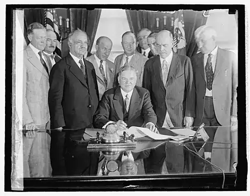 - ^ Gerhard Peters; John T. Woolley. "Herbert Hoover: "Statement on the Enactment of the Farm Relief Bill and on Plans for the Federal Farm Board.," June 15, 1929". The American Presidency Project. University of California - Santa Barbara. Archived from the original on 2016-03-04.