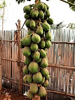 According to INRAB, the best fruit species in Benin are mango, papaya, banana, orange, avocado, guava, and pineapple, considering cost and income intensity, profitability and investment comparison, and financial competitiveness. Papaya, banana, and orange contribute more to producers' income and profitability, whereas increased pineapple production participates in jobs creation. From virtual non-existence in the 1980s to 222,000 tons of production in 2009, the pineapple sector now accounts for 1.2% of Benin GDP and 4.3% of the country's agricultural GDP after cotton and cashew nuts, ahead of shea butter and palm oil. The pineapple production zones are located in south, and growers fall into two groups, small with plots of 0.5 to 5 hectares (1.2 to 12.4 acres), and large with plots of 5 to 40 hectares (12 to 99 acres). Only 2% of Benin's pineapple production is exported to European markets. Some production is processed into juices locally, and the rest of the fresh pineapple is exported to neighboring countries, particularly Nigeria. In 2009, Benin's pineapple production reached 222,000 tons.[1]