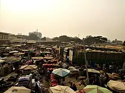 Fresh (wet) markets occur in most towns and villages, usually surrounded by large numbers of small shops selling foods, consumer items, imported foods and goods, clothing, household goods, etc. With a large portion of the population producing much of their own food, particularly for starches, open markets are where the diet is rounded out with items not self-produced. For those with higher incomes, more of the food consumed is purchased at market. Most vegetables are in villages and town markets, which usually have a major day, or multiple days, where traders and retailers are active in selling perishables in particular. Fish, meats, staple starch crops, legumes, soy and milk cheeses, fruits, and vegetables are available in the market every week of the year in most places with significant variations in the quantity supplied. Staple crops are usually sold to retailers by wholesalers, who obtain them from the producers. Meat is sold by the butchers who source from the producers. The source of vegetables depends on the season. Regional trade keeps a selection of vegetables available, with price and quantity fluctuations depending on the season. Visits to markets in the Parakou and Nikki areas observed avocados from Lomé in Togo and red onions from Niger. Eastern border markets have many Nigerian traders coming into Benin to purchase fruits and vegetables for sale in Nigeria. Most of these transactions are not captured in either of the countries' statistical records. Vegetables traders/retailers obtain their products either from the intermediary traders or directly at the farm gate if possible. For many items there are unwritten agreements that producers will sell to retailers, not directly to consumers. Intermediaries buy at the farms and transport the products directly to their various market destinations. Women dominate the role of vegetable retailers at these open markets. Vegetable producers market much of their produce in bulk at harvest time because of the highly perishable nature of their products. In general, producers conduct all of their sales immediately after harvest. The long marketing channel of vegetables in the larger peri-urban and urban areas involves several types of intermediaries, from local traders to wholesalers. Studies by INRAB have shown that producers are more inefficient in marketing than in production. There is a lack of market participation of farmers and current barriers to entry by farmers limit their access to markets.[1]