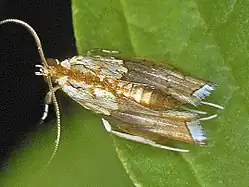The young larvae usually live on the underside of leaves. Then they spins two leaves together. They overwinter in a cocoon, where pupation takes place.[3]