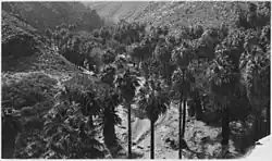 Tahquitz Canyon southwest of downtown Palm Springs is accessible for hiking and guided tours.[20] The Indian Canyons (consisting of Palm Canyon, Murray Canyon, and Andreas Canyon) also accessible for hiking, horseback riding, and tours, are south of Palm Springs.[21]