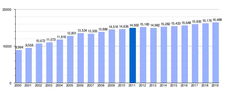 In 2018, it had a population of 16176 inhabitants (INE), although during summer the population triples due to tourism, the main economic engine of the town.