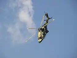 Military certification for the AW149 was announced by Finmeccanica at the 2014 Farnborough airshow.[6] The landing gear can sustain a touchdown with a sink speed of 9.5 m/s, compared with the 2 m/s for a civilian helicopter. The AW149 is being marketed as an alternative to the Sikorsky UH-60 Black Hawk family. Thailand has ordered 5 AW149 helicopters, and is the first export customer.[7][8] The Italian Air Force considered it as a search and rescue helicopter, but chose the lighter AW139M instead.
