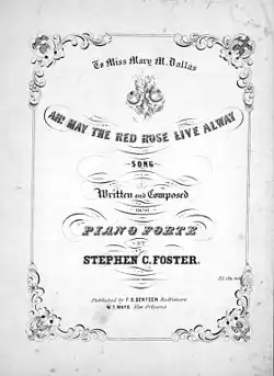 Ah! May the Red Rose Live Alway is a song written and composed by Stephen Foster in 1850. This song is written in the style of a parlor ballad โ€“ a genre of popular song at the time intended to be performed at a slow tempo and to communicate a sentimental quality.[1]