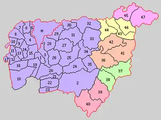 On February 11, 1955, the village of Hanyama merged into the city of Seto. Later that year, on April 5, 1955, the village of Chotaka merged into Chikusa-ku, Nagoya. The village of Tempaku (later Tempaku-ku) merged into Showa-ku, Nagoya. On January 1, 1957 Toyoake gained town status, following by Nisshin on January 1, 1958. On April 1, 1963 Narumi merged into Midori-ku, Nagoya.