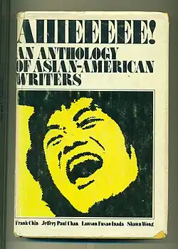 Aiiieeeee! An Anthology of Asian-American Writers is a 1974 anthology by Frank Chin, Jeffery Paul Chan, Lawson Fusao Inada, and Shawn Wong, members of the Combined Asian American Resources Project (C.A.R.P.). It helped establish East Asian American literature as a field by recovering and collecting representative selections from Chinese, Japanese, and Filipino Americans from the past fifty years—many of whom had been mostly forgotten.[1] This anthology included selections from Carlos Bulosan, Diana Chang, Louis Chu, Momoko Iko, Wallace Lin, Toshio Mori, John Okada, Oscar Peñaranda, Sam Tagatac, Hisaye Yamamoto, Wakako Yamauchi, many of whom are now staples in East Asian American literature courses. Because of this anthology and the work of C.A.R.P., many of these authors have been republished. At that time, however, they received little attention from publishers and critics because they did not subscribe to popular stereotypes but depicted what Elaine H. Kim calls the "unstereotyped aspects of Asian American experience".[2] The "aiiieeeee!" of the title comes from a stereotypical expression used by East Asian characters in old movies, radio and television shows, comic books, etc.[3] These same stereotypes affected the anthology itself: when the editors tried to find a publisher, they had to turn to a historically African-American press because, as Chin states: