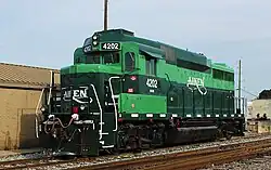 As of July 2014, the AIKR fleet consists of two locomotives, 4201 and 4202, both of which are EMD GP30s built in 1963.[4] At its founding, an EMD SW1500 was temporarily leased from Larry's Truck and Electric before the purchase of 4201 and 4202 from fellow WCRSC subsidiary Greenville & Western but has since been returned.