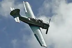 A Yak-52 using ailerons to roll counter-clockwise during an aerobatic maneuver