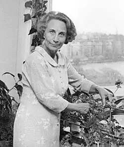 After her husband resigned from the premiership in 1969,, the couple lived in a house constructed at Bommersvik by the Social Democrats to honor Tage, which was owned by the Swedish Social Democratic Youth League.[6]