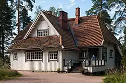 Ainola (literal English translation: "Aino's Place") is a museum in Järvenpää, Finland, which was the home of Finnish composer Jean Sibelius, his wife Aino (née Järnefelt), and their six daughters. Situated near Lake Tuusula, 38 kilometres (24 miles) north of Helsinki, the two-story wooden home was designed by Finnish architect Lars Sonck.[1] The foundation was laid in the autumn of 1903, and the Sibelius family began occupying the residence in September 1904. The second floor of Ainola was finished in 1911.