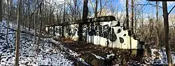 George Bamberger started Ainslie Wood's first non-farming business—a hotel/tavern called the Halfway House (so named because it was halfway between Hamilton, Dundas and Ancaster), located on land on Main Street West today used by Canadian Martyrs' School. Trains that crossed the Bamberger property were required, by a contract with the Bamberger family, to stop at the Halfway House for a minimum of five minutes, so that passengers could buy beer. The Halfway House's bartender would give the train operators a free beer each at the four-minute mark, to delay their leaving and provide the thirsty passengers more time to spend money. When the train did get going, passengers could, in season, reach out a train window and pick ripe cherries from the branches as they passed through the Bamberger's orchards.[2]