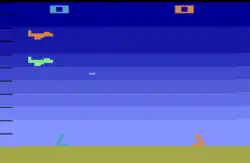 One to six objects will moves across the playfield with all objects requiring to be hit before a new wave of targets appear. The first three modes of "Anti-Aircraft Games" and "Torpedo Games" have the objects all worth one point, while the next three feature objects of different sizes and speeds that are worth four to zero points.[5] In "Shooting Gallery", the targets can change direction at any time with targets of rabbits, ducks and a clown being worth three, two and one point each respectively. The "Bomber" and "Polaris" games have the players ship moving in constant motion at the top of the playfield or at the bottom respectively. Each mode offers objects again to hit for one to four points each while the "Polaris vs Bomber" mode has the players attacking each other. One hit earns the shooter one point and has their opponent reappears on the edge.[5] The various modes in the game allow for guides missiles, adjusting the speed the missile is shot, a computer opponent, or the ability to add obstacles to some modes such as blimps in "Anti-Aircraft Games", and mines in "Torpedo Games" and "Polaris vs Bomber Games".[5]
