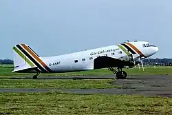 From October 1977, the company stationed a Dakota at Coventry airport to operate a contract transporting car components to Cologne for Ford. The second aircraft was based at Aberdeen operating oil charters.[2] In May 1979, two Douglas DC-6B aircraft were purchased from Greenlandair; however they proved uneconomical to operate due to the oil crisis and were disposed of soon after. The company ventured in to DC-6 operations again in 1987 when two other DC-6s joined the fleet [2][3]