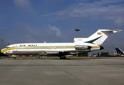 The airline's first jet aircraft, a Boeing 727-100C was acquired in 1971 to enable the airline to service longer-range international routes to Paris, Marseille and Casablanca. The 727 was joined not long after by a Boeing 737-100 for use on medium-range regional routes in Africa.[3] By March 1980, Air Mali had 577 employees; at this time, the fleet included one Antonov An-24B, one Boeing 707-320C, one Boeing 727-100C, one Ilyushin Il-18 and two Twin Otters that flew international routes to Abidjan, Accra, Banjul, Brazzaville, Casablanca, Conakry, Douala, Freetown, Lagos, Libreville, Lome, Monrovia, Niamey and Paris, and domestic services to Gao, Goundam, Kayes, Kenieba, Mopti, Nara, Nioro, Timbuctou and Yelimane.[7]