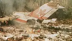 Air Ontario Flight 1363 was a scheduled Air Ontario passenger flight which crashed near Dryden, Ontario, Canada, on 10 March 1989 shortly after takeoff from Dryden Regional Airport.[1] The aircraft was a Fokker F28-1000 Fellowship twin jet.[2] It crashed after only 49 seconds because it was not able to attain sufficient altitude to clear the trees beyond the end of the runway, due to a buildup of ice and snow on the wings.[3]