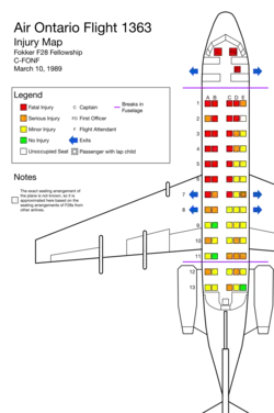 - ^ Ranter, Harro. "ASN Aircraft accident Fokker F-28 Fellowship 1000 C-FONF Dryden Municipal Airport, ON (YHD)". aviation-safety.net. Aviation Safety Network. Retrieved 2 February 2014.