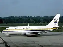 Due to the tense Egypt–Israel relations, the airline operated discreetly: for a long time it had no website, public schedule of flights, markings on planes, signs at the airports, or a way to make online bookings.[2] Air Sinai ceased airline operations in its own right in 2002 and from then on operated as a 'paper airline' for its parent company, Egyptair, using their aircraft without any markings identifying either carrier, although some aircraft were spotted during this era in Tel Aviv in full Egyptair branding. Flights were not listed in Egyptair schedules and did not appear on their website or route maps either.[1][3] As of 2014, Air Sinai flights were displayed on arrival and departure boards at Cairo Airport using the IATA code 4D. In February 2020, online booking was introduced via a website run by a third-party travel agency based in the United Kingdom.[2]
