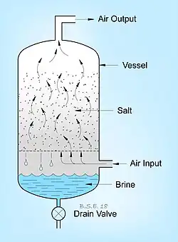 When water vapor comes in contact with the salt, it attaches and dissolves the media, or deliquesces. As liquid water builds on the salt crystals, brine is formed, which drains down and collects in the bottom of the vessel. Periodically, the brine must be drained and similarly, the media must be refilled. Typically, deliquescent dryers will produce a dew point suppression of 10 °C to 14 °C (18 °F to 25 °F).
