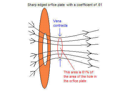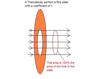 An orifice with a flow coefficient of 0.59 would flow the same amount of fluid as a perfect orifice with 59% of its area or 59% of the flow of a perfect orifice with the same area (orifice plates of the type shown would have a coefficient of between 0.58 and 0.62 depending on the precise details of construction and the surrounding installation).[1]