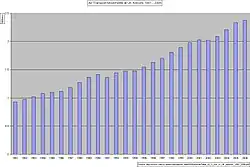 - ^ "CAA Statistics 2006 – International Passenger Traffic to and from UK Reporting Airports (in Thousands) by Country 1996–2006" (PDF). United Kingdom Civil Aviation Authority. Archived from the original (PDF) on 26 March 2009. Retrieved 3 October 2007.
