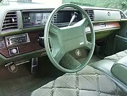 In the early 1970s, General Motors began offering cars equipped with airbags, initially in government fleet-purchased 1973 Chevrolet Impala sedans. These cars came with a 1974-style Oldsmobile instrument panel and a unique steering wheel that contained the driver-side airbag. Two of these cars were crash tested after 20 years and the airbags deployed perfectly.[31] An early example of the airbag cars survives as of 2009.[32] GM's Oldsmobile Toronado was the first domestic U.S. vehicle to include a passenger airbag in 1973.[33] General Motors marketed its first airbag modules under the "Air Cushion Restraint System" name, or ACRS. The automaker discontinued the option for its 1977 model year, citing a lack of consumer interest. Ford and GM then spent years lobbying against air-bag requirements, claiming that the devices were unfeasible and inappropriate. Chrysler made driver-side airbags standard on 1988 and 1989 models, but airbags did not become widespread in American cars until the early 1990s.[34]