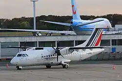 Société Airlinair, simply known as Airlinair, was a French regional airline based in Rungis, France,[1] operating scheduled regional flights (some of which were on behalf of Air France), and aircraft lease services.[2] The airline has set up bases at Paris-Orly Airport and Lyon-Saint Exupéry Airport. As an Air France regional partner, it also offered flights from Paris-Charles de Gaulle Airport
