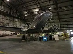 The museum's DC-3 is currently being made airworthy. One of its two engines has been overhauled, while its second is still undergoing a rebuild; the exterior and interior restoration of the aircraft is nearing completion, while the installation of new carpeting and restored seats has been completed. This Douglas DC-3-G202A, registration number NC1945, serial number 3294, was built in Santa Monica, California in February 1941. It was delivered to Transcontinental and Western Airlines at Kansas City, Missouri, on March 4, 1941, and now resides in its original home city again.[21]