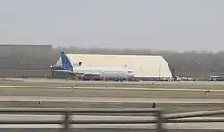 FAA approval was granted to ferry the aircraft from Roswell, New Mexico, (ROW) to Kansas City, Missouri, (MKC). The aircraft arrived safely on January 30, 2010, shortly after 3:00 pm. This aircraft first flew in 1972 under the red-and-white colors of hometown airline TWA. Due to its large size, it is parked south of the museum's hangar at Wheeler Airport, the large tail hanging beyond the fence line surrounding the downtown airport's apron.[26] The aircraft is currently, slowly being restored to operational service.