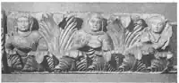 The Airtam Frieze is a sculpture in stone of women, musicians from Kushan Bactria dating to the 1st or 2nd century AD,[1][2] which was excavated from the ruins of Airtam, near Termez in southern Uzbekistan. Five musicians are represented among acanthas leaves, playing double-flute, drum, lute, harp and cymbals.[3] The sculpture has been thought to have been part of the walls or the entrance of a Buddhist temple.[4]