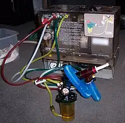 Mechanical devices used include positive expiratory pressure (PEP), intrapulmonary percussive ventilators, mechanical insufflation-exsufflation known as a mechanically assisted cough,[1][9] and airway oscillatory devices.[10] Several mechanical techniques are used to dislodge mucus and encourage its expectoration. Chest percussion can be administered as a manual technique but can also be performed using specific devices that use chest wall oscillation or intrapulmonary percussive ventilation. Intrapulmonary percussive ventilators (IPVs) are machines which deliver short bursts of air through a mouthpiece to help to clear mucus. The air is delivered at a rate of approximately 150 pulses per minute and may be used with nebulized medication. Chest wall oscillation is a passive system that is not dependent on effort from the user. It involves the use of a special vest that employs the use of a compressor to inflate and deflate the vest rhythmically at timed intervals, and thus imposes high frequency chest wall oscillations that are transferred to the lungs. These oscillations thin airway mucus, and facilitate its removal by coughing. Delivery of air to the vest can be controlled manually.