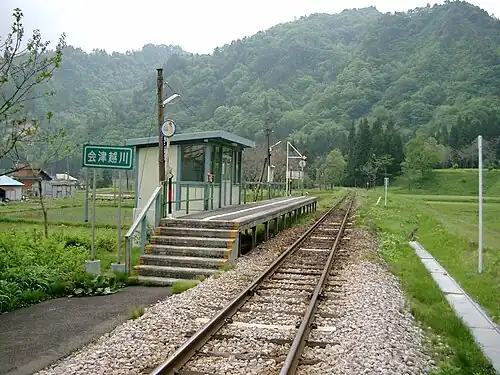 Due to damage caused by torrential rainfall on July 30, 2011, services on the section of line between Aizu-Kawaguchi and Tadami, which includes this station were replaced by a provisional bus service. The closed section resumed operations on 1 October 2022.[2]