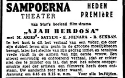 - "Nieuwe Inheemsche Filmproductie 'Ajah Berdosa'" [New Native Film Production, 'Ajah Berdosa']. Bataviaasch Nieuwsblad (in Dutch). Batavia. 10 January 1942. p. 3. Archived from the original on 10 November 2013. Retrieved 9 November 2013.