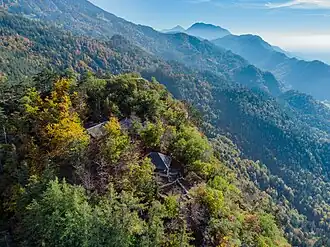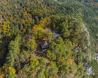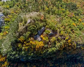 A settlement from late Antiquity has been found just below the summit and evidence shows that it was probably inhabited much earlier. Excavations began in 1976. Most evidence is from the period immediately after the collapse of the Roman Empire (476 AD), when it seems locals moved to the safety of the peak from the valley below during a period of upheaval and migration of various Germanic and Slavic tribes through the region. With its location high above the valley with a natural precipitous barrier towards the south and an excellent view up and down the Upper Sava Valley, Ajdna was an ideal location for a defendable settlement. A number of other high-elevation settlements from the period between the 4th and 6th centuries have been found in the area of Slovenia, but Ajdna lies at the highest elevation of all. Remains of a total of 25 buildings have been excavated, including an early Christian temple. In a nearby building eleven graves have been excavated and the potsherds, weapons, and jewellery found are on display in the museum in Kranj.[1] It is believed this was not the main burial ground which has so far not been discovered. The remains of the religious building have been conserved, roofed over and are open to visitors.[2]