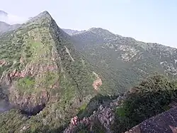 The eastern portion of the district is generally flat, broken only by gentle undulations. The western parts, from north-west to south-west, are intersected by the Aravalli Range. Many of the valleys in this region are sandy deserts, part of India's Thar Desert, with an occasional oasis of cultivation. Some fertile tracts are also present; among these is the plain on which lies the town of Ajmer. This valley has an artificial lake, and is protected by the massive walls of the Nagpathar range or Serpent rock, which forms a barrier against the sand. The only hills in the district are the Aravalli Range and its offshoots. Ajmer is almost totally devoid of rivers. The Banas River touches the south-eastern boundary of the district so as to irrigate the pargana of Samur. Four small streams—the Sagarmati, Saraswati, Khari and Dai—also intersect the district.