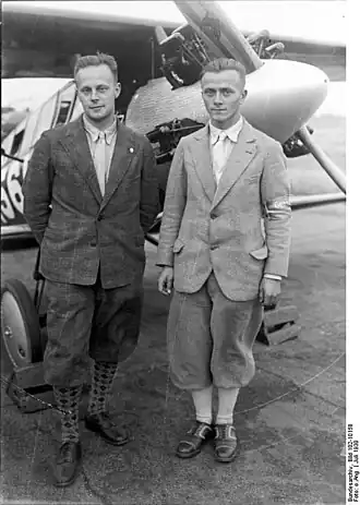 Rudolf Neininger (left) with his crewman in front of the D-18 during Challenge 1930 | |